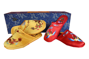 緞面手工繡花拖鞋